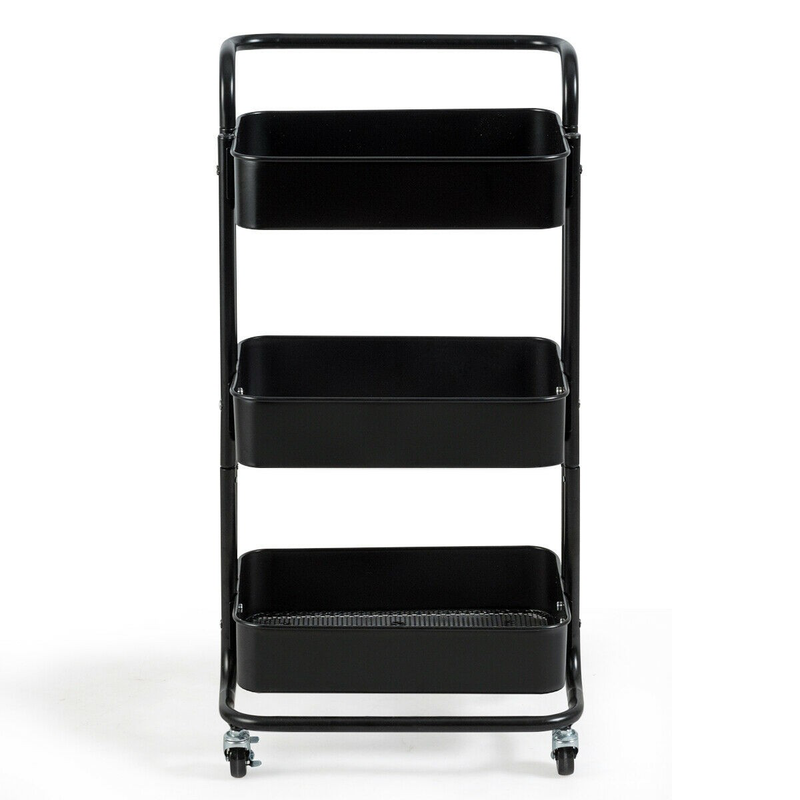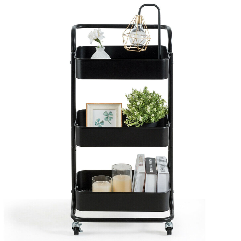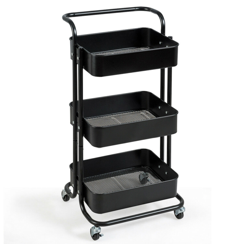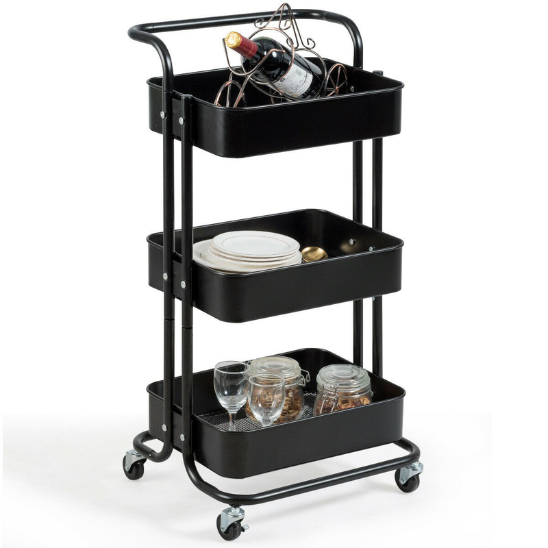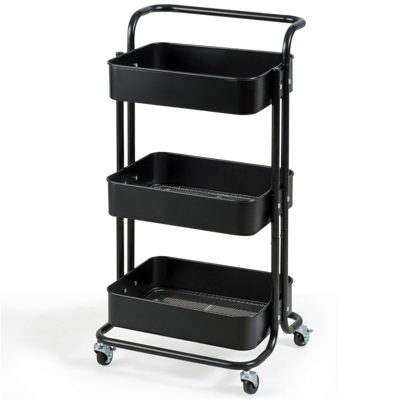 3-Tier Metal Rolling Storage Cart Trolley 2 Brakes with Handle