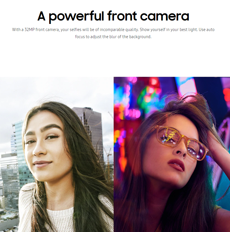 | Selfie camera | Single | 32 MP, f/2.0, 0.8µm |