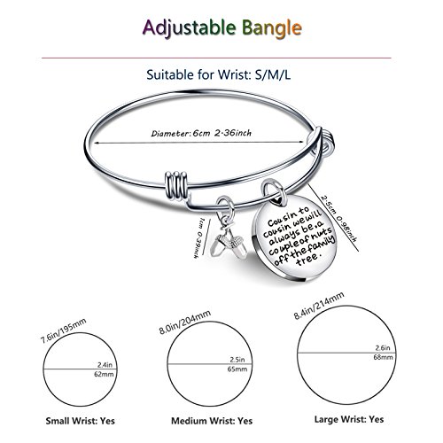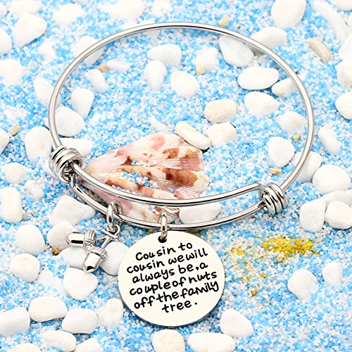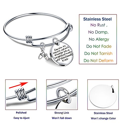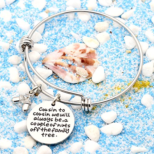 - Comes with Lauhonmin jewelry brand gift bag!ready for giving! - Double Pendant Cute Nuts Charms Bracelet - Cousin to cousin we will always be a couple of nuts off the family tree - You will receive Bracelet hand stamped with the words "Cousin to cousin we will always be a couple of nuts off the family tree" - Stainless steel - Meet rigid safety and non-toxic materials standard ,no distortion, no damp, no rust - PERFECT GIFT for Family Cousin not just for Birthday Graduation Christmas New Year but for any time of the year . The best gift for Family ! - Cousin to cousin we will always be a couple of nuts off the family tree - Double Pendant Bracelet for Cousin! Unique design fashion jewelry gift for Women Men Girls Boys! Condition:100% New,High Quality! Material:Stainless SteelPacking Include:1pcs Bracelet(Free jewelry bag)