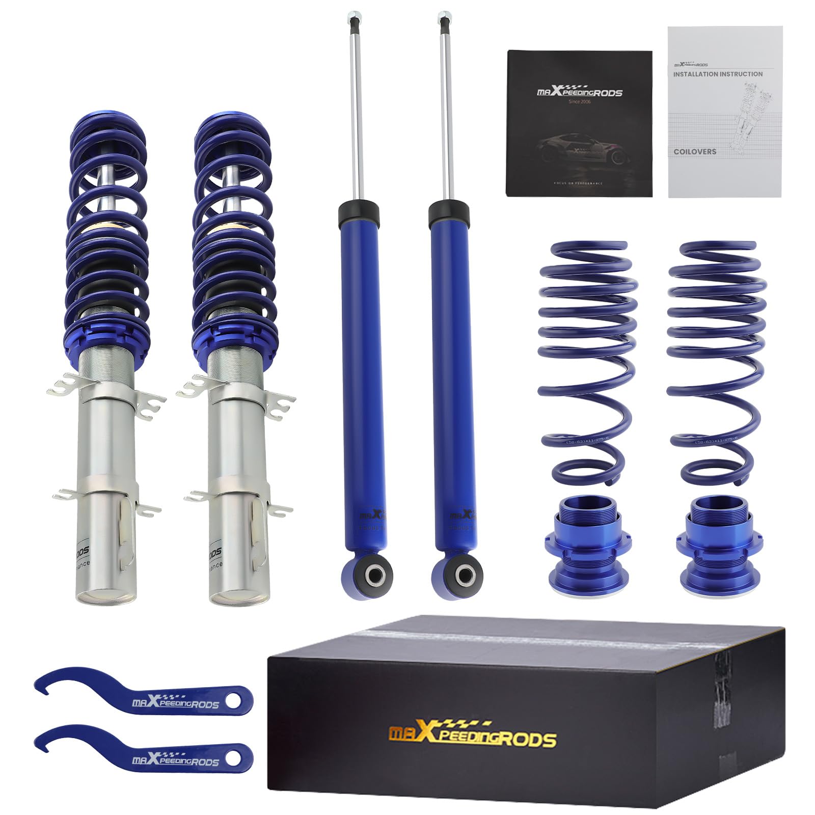 maXpeedingrods Coilovers para VW Golf MK4 FWD 1997-2007, para VW Jetta MK4 1999-2005, para VW New Beetle FWD 1998-2010, kit de suspensión de resortes ajustables en altura, kit de descenso azul