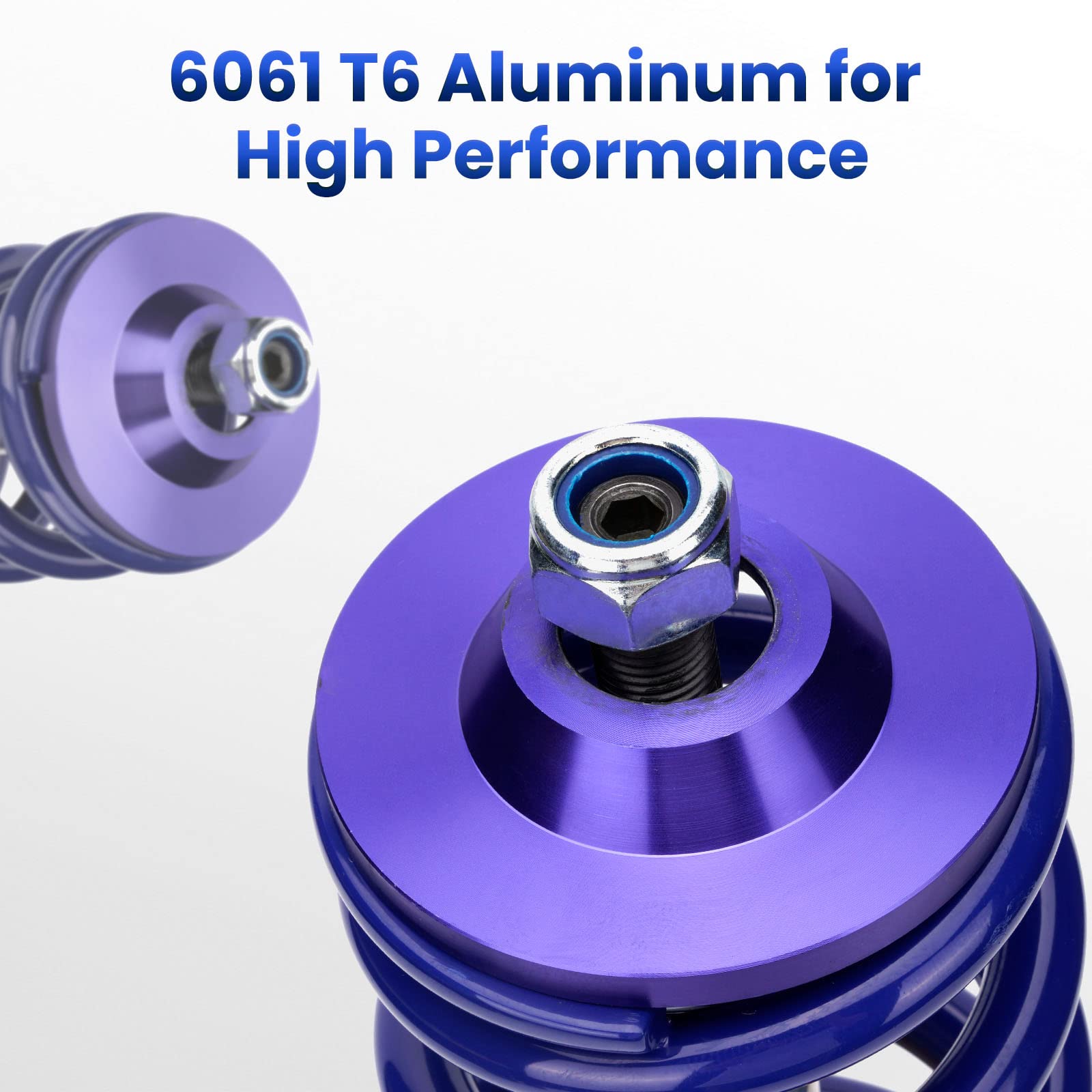 -【High Tensile Spring】 Front: 8 kg/mm (448 lbs/in) & Rear: 6 kg/mm (336 lbs/in); Under 600,000 times continuously test, the spring distortion is less than 0.04%. Plus, the special surface treatment is to improve the durability and performance