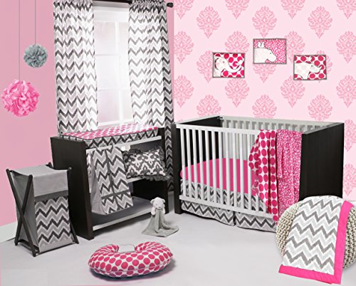 $135.899- SET INCLUDES: hot pink and grey reversible comforter 35x44, grey sheet for a standard crib 52x28x7.....