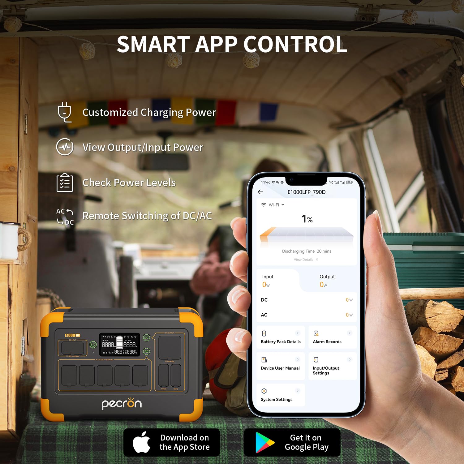 -[Power All]: Pecron E1000LFP power station With an impressive output of up to 1800W, this portable power station comes with 12 output, Such as 5xAC Outlets, 2xUSB-C, 2xUSB-A, 1xXT60 Output, 1xCigar Port, 1xDC 5525 Output, which support a wide range of equipment, making it ideal for emergencies, camping, RV trips, and home use.