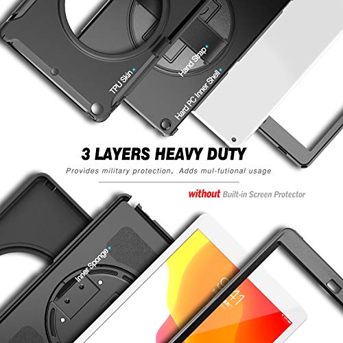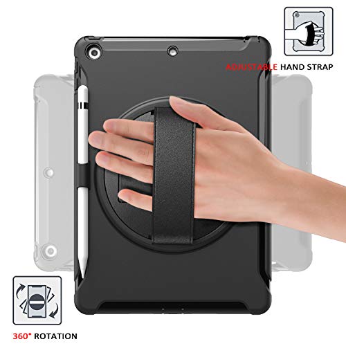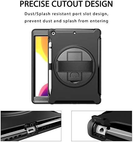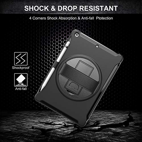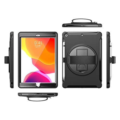 Estuche Rantice para iPad 10.2 2019, Estuche iPad de 7.a generación, Cubierta de protección híbrida resistente a prueba de golpes Construida con correa giratoria para la mano / Soporte y soporte para lápiz para iPad 7th Gen 10.2 pulgadas 2019 (Negro)