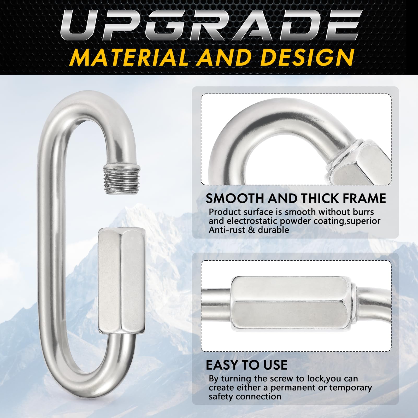 sprookber Eslabones rápidos de cadena de acero inoxidable – Conector de cadena de acero inoxidable 304, mosquetón de tornillo, ganchos de cadena, juego de 6 (2,45 pulgadas)