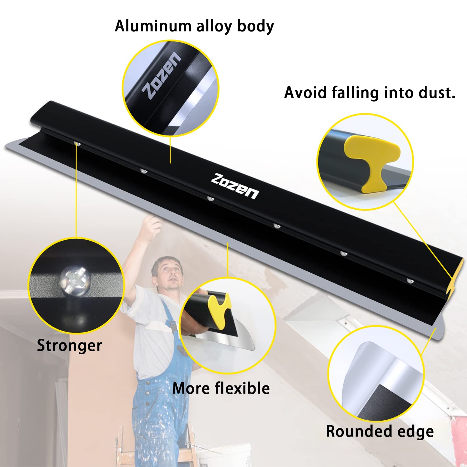 -⚒【Professional Tool】All body made of aircraft-grade aluminum alloy, 0.3mm high-quality European stainless steel blades. Zozen drywall skimming blades move mud effortlessly and with high sensitivity, enabling finishers to complete their jobs efficiently with consistent, professional results.